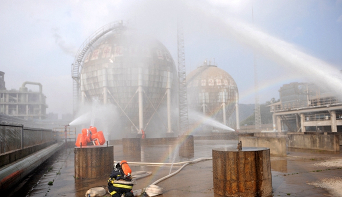 10月15日,公司在??诠I(yè)園區(qū),組織所屬企業(yè)開展重大危險(xiǎn)源液氨泄漏聯(lián)合演練,進(jìn)一步落實(shí)政府主管部門有關(guān)要求,檢驗(yàn)和完善相關(guān)應(yīng)急預(yù)案,提升應(yīng)急救援隊(duì)伍的應(yīng)急救援能力,保障企業(yè)安全生產(chǎn)和人員生命安全,維護(hù)社區(qū)穩(wěn)定。昆明市西山區(qū)安監(jiān)局、環(huán)保局、??诠I(yè)園區(qū)管委會(huì)等單位觀摩演練。